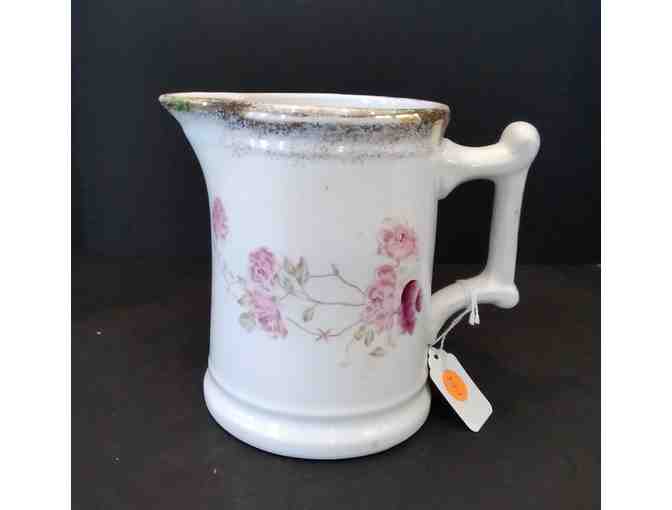 Sevres Pitcher with Pink & Burgandy Flowers, 6.5" tall x 4.5" diameter