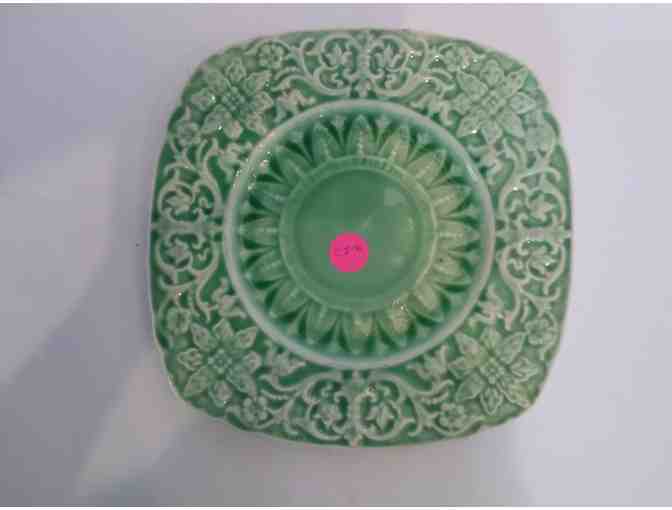 Unknown Green & White Square Plate, 7.75" x 7.75"