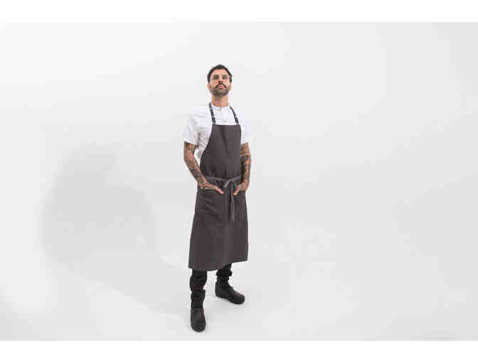 Our widest and longest framed chef apron in color: Slate. Made of 12oz. American milled canvas, with an adjustable full leather neck strap, 40" wide x 40" length body and detailed chest and hip pockets, this LUXE Apron is the grand daddy of chef aprons.