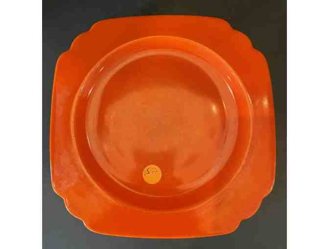 Homer Laughlin Vintage Riviera Plate in Original Red Color, 9" x 9", a few fire marks on the back