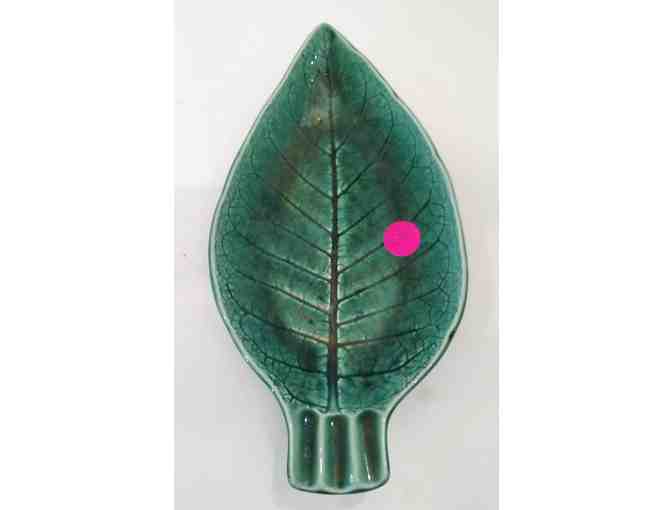 Harker Leaf Type Green Ashtray circa 1840, 8.5" long x 5" wide