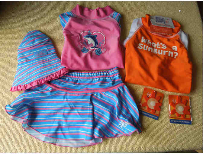 UV Skinz - Baby UPF 50+ Clothing - Size 4T Swim Set, a Baby Sun Shirt and 2 Key Chains