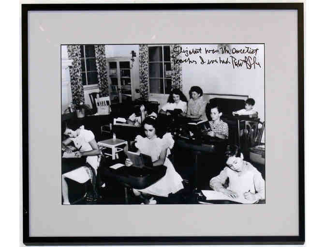 1943 photograph of Elizabeth Taylor and Robert Blake in the MGM Studios classroom, signed by Robert Blake
