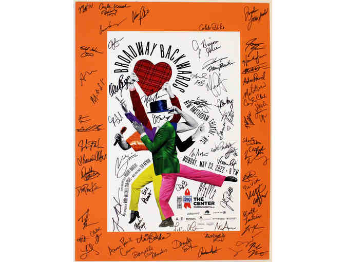 Matted and signed 2022 Broadway Backwards poster and DVD. Poster signed by Alexandra Billings, Danny Burstein, Lena Hall, Joaquina Kalukango, Bernadette Peters, BD Wong and others
