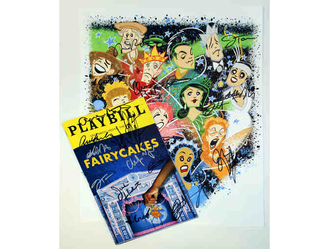 Justin "Squigs" Robertson's drawing of the company of Fairycakes and Playbill, signed by Julie Halston, Ann Harada, Jackie Hoffman, Mo Rocca, Jason Tam and the entire cast