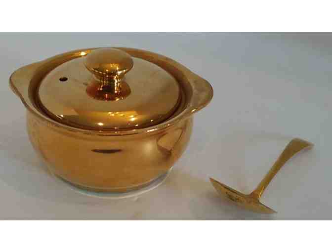 Hall China Golden Glo Sugar Bowl 477 w/Lid & Spoon