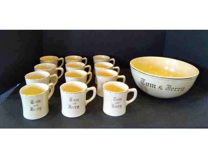 Homer Laughin "Tom & Jerry" decorated 12 pcs of cups and matching bowl, Ivory color, looks brand new