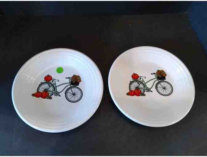 FTC Fiesta White Lunch Plate, Bicycle & Pumpkin, 2 plates 9" diameter, never used, from Fiesta Celebration
