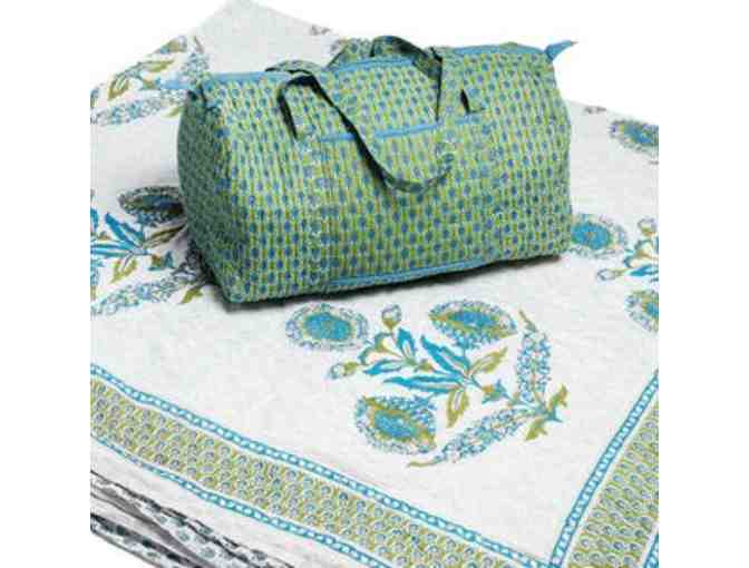Teal and Fox collaborated with seasoned artisans in Jaipur, India to modernize traditional Indian patterns, and create our own exclusive designs. Their quilts come with a matching cotton weekender bag, which are ideal for daily use or spontaneous weekend trips.