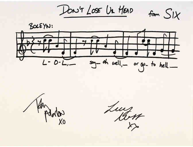 "Don't Lose Ur Head" Musical Phrase from Six, Signed by Composers Toby Marlow & Lucy Moss