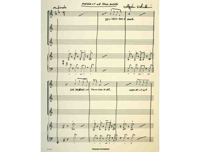 "Merrily we roll along, roll along, bursting with dreams!" This musical phrase from Merrily We Roll Along, handwritten and signed by the incomparable legendary composer Stephen Sondheim, can be your dream come true. Premiering on Broadway in 1981, Sondheim's score received a 1982 Tony nomination.