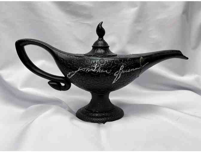 Jafar lamp prop used onstage in Aladdin, signed by Jonathan Freeman and Dennis Stowe