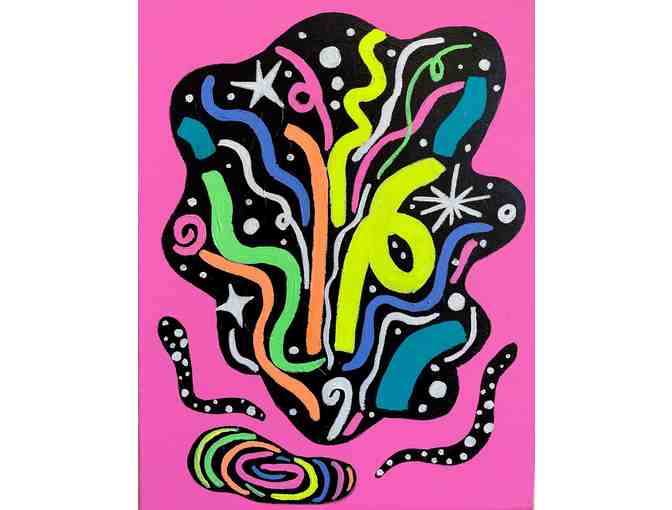 The Seagen PRIDE Employee Resource Network is proud to donate this 11x14 framed acrylic on canvas painting by Nikita Ares, an LGBTQ+, Seattle-based artist originally from Cagayan de Oro, Philippines. She received her BFA from Cornish College of the Arts in 2018. Her works consist primarily of drawing and painting that includes movement, energy, and consciousness.