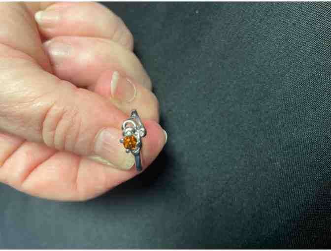 This this ring is silver with a beautiful burnt orange gem in the middle! The perfect gift for any November baby!