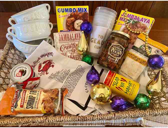 You won't be able to resist this collections of culinary favorites from the American South! This basket includes gumbo starter kit, gumbo bowls and spoons, red beans and rice, jambalaya starter kit, flavored pepper jelly, local seasonings, recipes and sweet pralines!