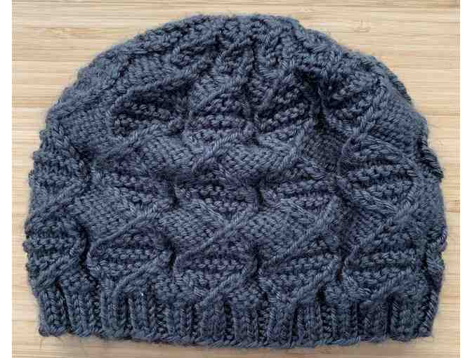 This stylish hand-knit hat features an elegant cable design resembling a DNA double helix. Show off your passion for science while keeping your head warm! Hat is adult size M/L and made of 100% acrylic. Machine wash cold, tumble dry low.