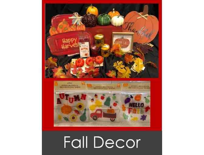Decorate for Fall! This set includes two fall-themed wall hangings, three scented candles (Bartlett Pear Cider, French Toast & Pumpkin Butter, Harvest Berry), an assortment of decorative pumpkins and gourds, a fall foliage garland, maple lights, a little framed Happy Fall sign, and jelly window clings to announce your love of the best season!