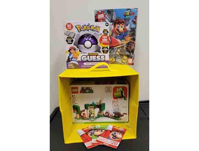 "One-up" your game with this great Nintendo-themed basket from QPD! This basket has fun activities to do whether you're taking a "disconnected" day (puzzle, Legos, Pokemon quiz ball) or fully immersed ($50 Nintendo gift card). All done, of course, in your cozy gaming-themed socks.