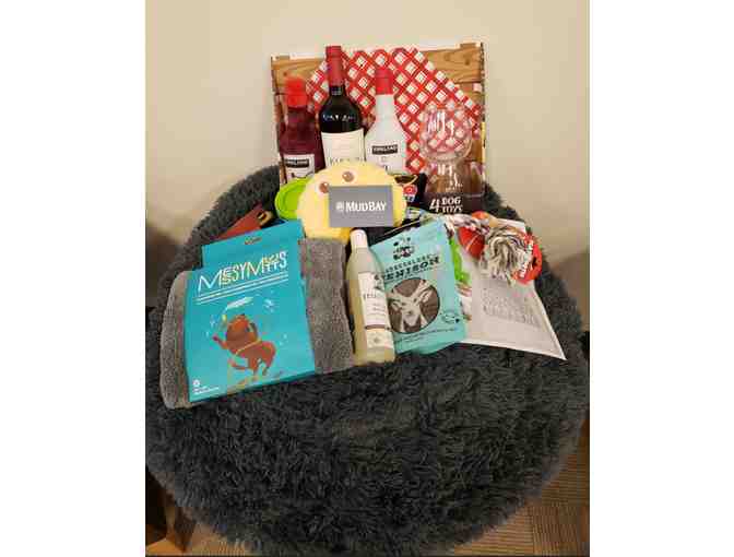 Celebrate your best friend with a "bottle" of Cabernet Slobberon! This wine themed dog basket has a calming dog bed, $50 MudBay gift card, six dog toys, venison dog treats, wet food container lids and spoon, dog bath set (towel, shampoo and brush), and for you, a bottle of 2020 Bar Dog Red blend, two stemless wine glasses, and a dog themed kitchen towel. What a perfect pairing for your whine! Donated by the Protein Solutions Team.