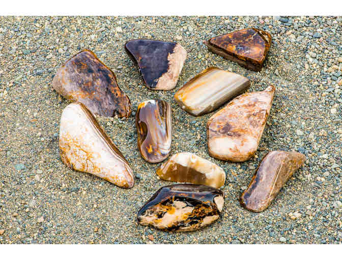 Polished petrified wood from Saddle Mountain, Washington. Large (2-3") pieces of 15 million year old petrified wood from the Roza basalt in central Washington.