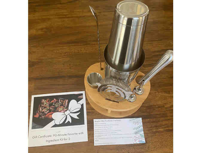 Get ready for your upcoming holiday entertaining with LIVE instructional classes for cooking and drink creations! What is included: Cooking class led by a live virtual chef. Cuiline.com certificate for 90 minutes with chef and delivery of ingredient kit for 2 people. The class lets you chose the recipe and time that works for you to create your new cuisine. Plus a bartender set to create fall holiday mocktails and cocktails! Note: No alcohol will be provided in this basket.