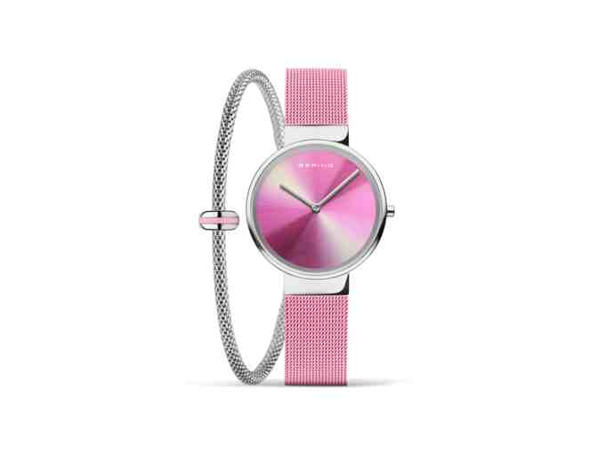 The special edition TIME IS LIFE consists of a watch in striking pink with a matching silver-coloured bracelet and a charm adorned with pink. The extravagant look has its model in nature - auroras that light up the Nordic sky in the most magnificent colours. With its powerful pink, the set is not only a fashion statement, but also a reminder of vital cancer prevention in everyday life: the charm bears the engravings TIME and LIFE, and the watch has a special back case in which the slogan TIME IS LIFE and a solidarity bow are incorporated. BERING will donate 15 US Dollars for every TIME IS LIFE set sold to the Know Your Lemons Foundation to promote early detection of breast cancer.