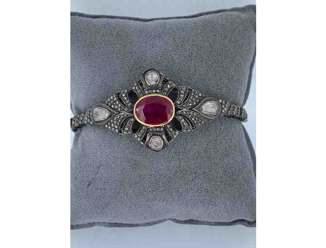 Antique Ruby and diamond bracelet set in silver with gold bezel, assorted rose-cut diamonds