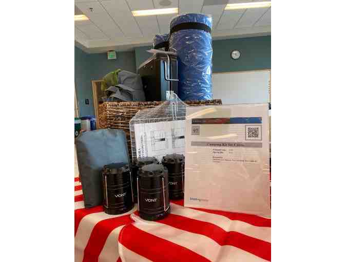 Have you ever thought, I wish I had what I need so that I could camp in all this Pacific Northwest beauty? You haven't? Maybe you should, and here is just the kit to get you started. Whether you're a seasoned professional camper or are looking to add seasoned professional camper to your resume, there is something here for everyone. Kit includes: One lightweight, waterproof, easy to set up 2-person tent, with two lightweight foam sleep pads for a little extra cushion and protection from the ground, and one tarp for even more protection. One 14-in-1 multi tool including a hammer, axe, pliers, knife blade, and more. One first aid kit if your attempt at using the muti tool goes horribly awry. A 4-pack of LED lanterns and extra batteries, mosquito coils to keep unwanted pests away, and a flex neck lighter to help light the coils, camp stove, and campfire. One two-burner 10,000 BTUs per burner propane gas camping stove with two 16-oz. propane tanks (gas not included). And to help with cooking, a portable cookware set which includes a kettle and a non-stick 6.5 pan and 5.5 pot, and a stainless-steel BBQ grill basket for meat, fish, vegetables. Youll also get a 4-piece BBQ grilling tool set (spatula, fork, tongs, and cutting knife), and for dessert, 10 telescoping marshmallow roasting sticks for smores (goodies not included). Okay, you can use them for hot dogs, too. An unbreakable dinnerware set for 4 (dinner plate, salad plate, 37- and 28-oz bowls, 12-oz cups, cutlery) is yours to serve your scrumptious camp meals on. And, sadly, you'll also get two collapsible tubs for doing dishes. After you've wiped your hands, grab the two standard playing card decks and enjoy some downtime. Hearts, Blackjack, Poker, Solitaire - you choose. And finally, a fully insulated and collapsible zipped closure picnic basket that will carry up to 65 lbs.