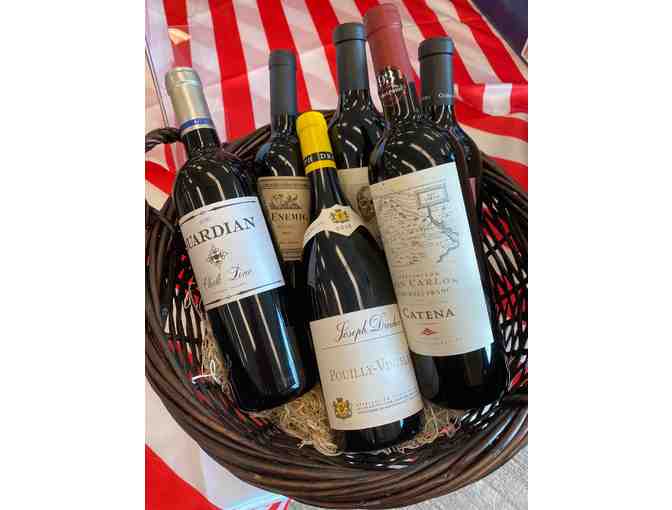Enjoy a variety of Rick Anderson's favorites wines! Basket includes: Chalk Line – Guardian Winery, Woodinville, WA, Numb Skull – Mark Ryan Winery, Woodinville, WA, Old Scratch – Gorman Winery, Woodinville, WA, El Enemigo Malbec – Argentina, Catena Cabernet Franc – Argentina, and Pouilly-Vinzelles – France.