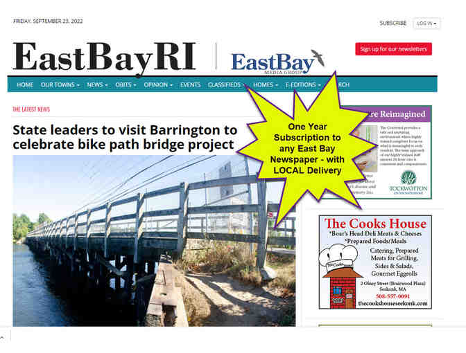 One Year Subscription to any East Bay local newspaper - with LOCAL delivery.