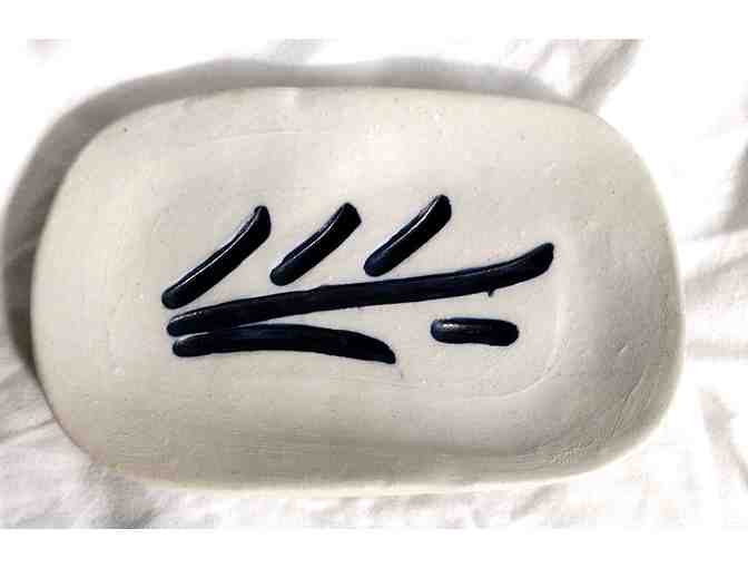 Measures 6 1/2" long by 4" wide and is slightly curved on all sides.