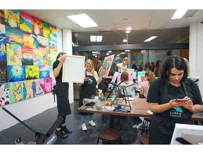 This gift card is good for two $45 admission to a Corks and Canvas paint event (Virtual or In-Person). These tickets never expire. Check out some of the awesome events at https://corksandcanvasevents.com/