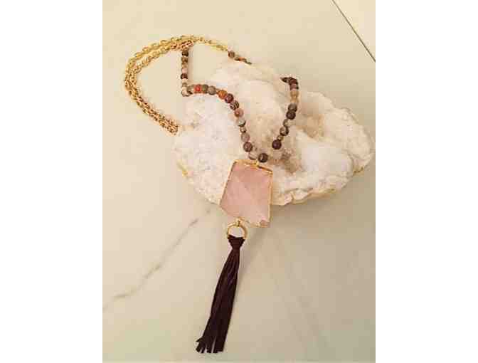 Maile by Design - Rose Quartz with Moonstones Long Tassel Necklace