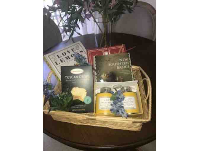 Cookbook basket with tea, vintage spreaders