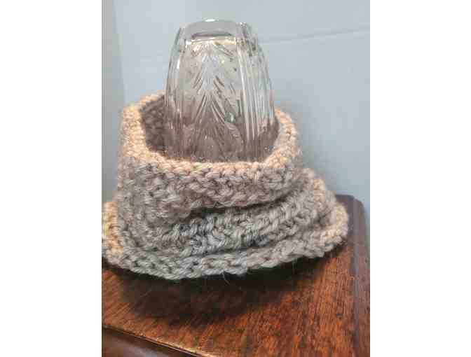 You are ready for Fall with this Chunky Infinity scarf with a twisted pattern cream and wheat shades