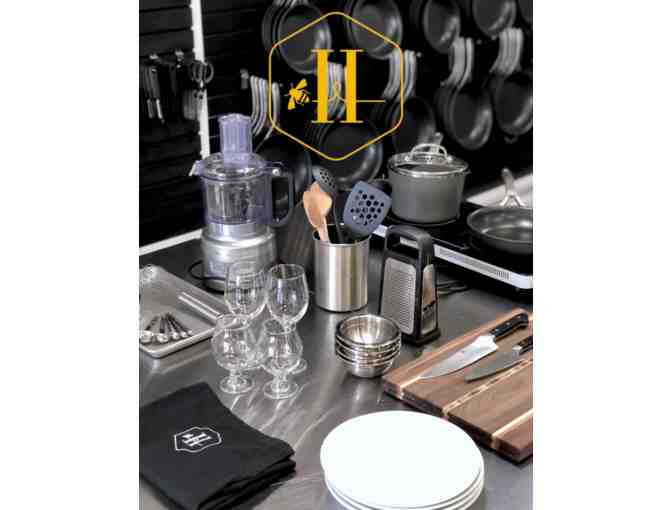 Honeycomb Kitchen Shop has a state of the art teaching kitchen to host instructional hands on culinary classes. HKS partners with local culinary talents to instruct the classes as well as supports local farms and produce companies to offer the best ingredients.