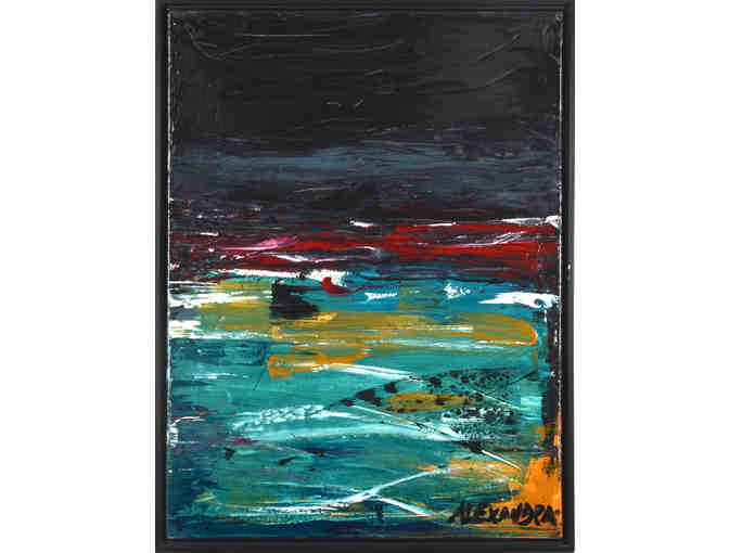 "Before Storm" was created with dramatic colors depicting an abstract landscape before an upcoming storm. The painting is executed in impasto (thickly applied paint) style which is stressing the drama and is adding the depth and texture to the artwork.