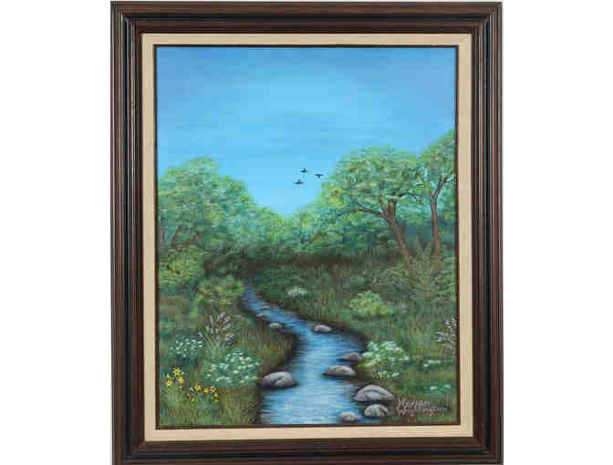 Marian Wrightington never went to art school, but she did take classes locally. Now she just paints oils on her own and always of things she loves - like flowers, sunsets, mountains, beaches, and birds - a true nature lover!