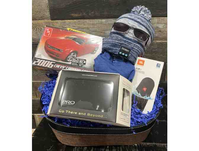 This basket has everything you need for your young gentlemen's interest. This basket includes: