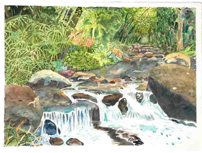 Lumahuli Stream near Taylor Camp. Original Watercolor 11"x15"
