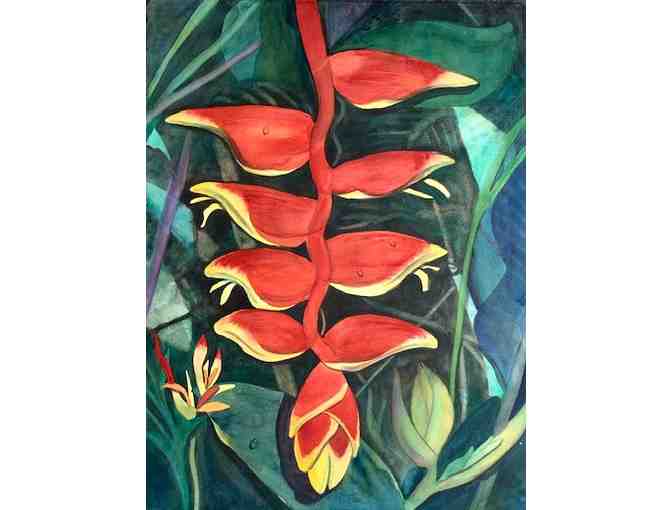 Original "Heliconia" watercolor matted 34"x26" www.kauai-artist.net An Original Watercolor by Marionette Taboniar, a Kauai artist reproducing the "wonders" of Kauai. This is from her collection of unique Kauai sites, flowers, plants and wildlife. Painting measures 8" x 10." Quote from her Etsy website ALOHA from the beautiful, tropical island of Kauai! My name is Marionette and I am a full time artist and art instructor. I opened my studio/gallery "Painting Paradise" on the island of Kauai in 2004 where I teach a variety of classes such as watercolors, acrylics, encaustics, silk painting, pastels, and more. I have been painting professionally for over 25 years, and my paintings can be found in private and public collections all around the world! I am excited to say that my art is now part of the permanent decor at the new Koloa Landing Resort at Poipu and at the Grand Hyatt Kauai Resort and Spa in Poipu. My painting "Ti Leaves and Palm Trees" was featured in The Artists Magazine's November 2013 issue just inside the front cover. I have also done some design work for Victoria's Secret, Designs Studios Honolulu, Aunty Lilikoi, Kauai Coffee, Hawaiian Pineapple Company, Mele Kalikimaka Tshirts, the cover of the short story "Kauai Getaway" by Gregg Edwards Townsley, and more. If you are looking for that special something to bring back fond memories (or future dreams) of your trip to Hawaii, you've come to the right place! I would be happy to personalize your art with a message from Kauai or even a special custom painting. Just send me a note.