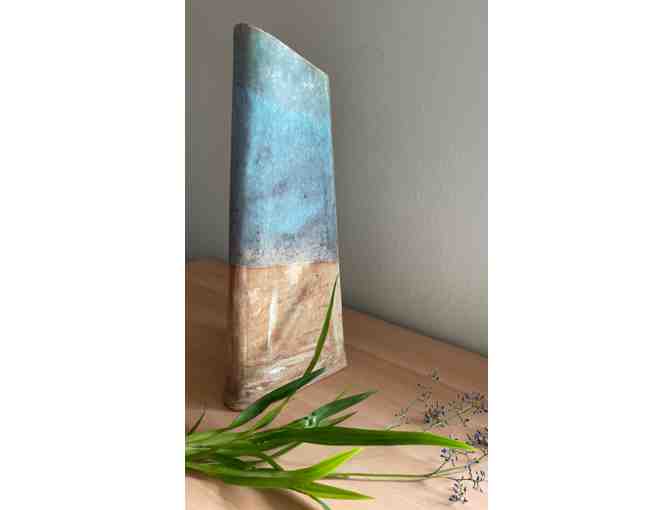 www.ryhpottery.com "Sea and Sand" are together as one in Ron Hanatani's triangular vase. The vase is 13 inches high with a triangular base measuring 5 1/2 inches by 5 inches by 5 inches. Ronald Y. Hanatani is an amazing ceramist and artist. Ron also makes the ceramic tea cups at the Center. RYH Pottery is located in Volcano Village near the entrance to Hawaii Volcanoes National Park on the Big Island of Hawaii. RYH Pottery specializes in functional ware with a Japanese influence. To visit his studio/gallery please call (808) 985-8530 or email him at ron@ryhpottery.com to set up an appointment. His work and talent are immense and his prices are so reasonable! RYH Pottery was established in 1991 by Ron Hanatani after returning from a 3- year stay in Kyoto, Japan where he studied pottery and the Japanese language. Prior to living in Japan, he worked as a geologist with the Hawaiian Volcano Observatory located in the Hawaii Volcanoes National Park. He exchanged working with earth and fire as a geologist with working with clay and fire working as a potter. RYH Pottery began as a one-man operation and continues to be so to this day. All of the work involved is done by the owner. This includes wedging the clay, forming the piece on the wheel or slab roller, drying and bisque firing, decorating and glaze firing. The pottery done at RYH Pottery is mainly functional ware made primarily for the people of the Big Island. This includes bowls, plates, mugs, teacups, vases, and planters. Although they can be found in several galleries in the Volcano Village area, most of the pottery are sold directly to customers from the RYH Pottery studio/gallery and several craft fairs throughout the year. Special orders for weddings, birthdays, anniversaries, house-warmings etc. are welcomed. RYH Pottery works with the customers to design and create pottery that is within their budget. For state of Hawaii residents, RYH Pottery has a mailing list of over 1,000 customers who periodically receives notices by mail of events such as future craft sales. If you want to be on this mailing list, please send an email to ron@ryhpottery.com RHY Pottery P.O. Box 753 Volcano, HI 96785 808.985.8530