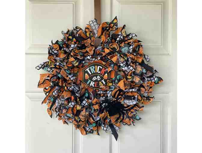 Get ready for a spook-tacular Halloween with this adorable Trick or Treat Ribbon Wreath made by the 5th Grade Class. This is the perfect addition to your Halloween decor and a fun way to greet Trick or Treaters. Each 5th grader helped tie the ribbons to create this boo-tiful wreath.