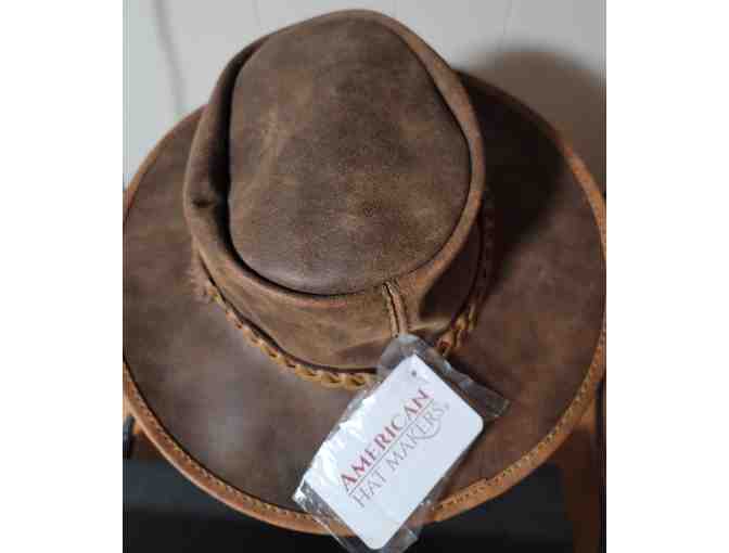 Large Copper "Crusher" all leather hat; Made in USA with a western flair.