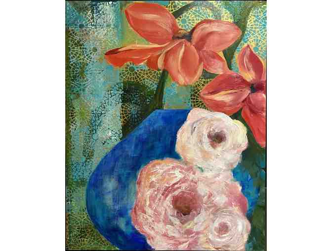 "Peonies on Blue" by Afsaneh Djabbari-Aslani