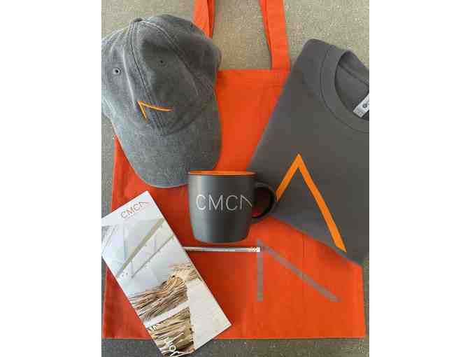 Household Membership and gift bag containing CMCA's signature orange tote, coffee mug, hat, magnet, and pencil