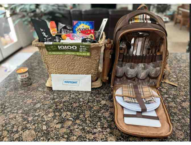Camp glamorously outdoors, but without the bugs and dirt. Basket includes a one-night stay at Waypoint Ventura campsite, plus everything you need to make it a memorable staycation (s’mores kit, game, coffee mugs, candle…you name it, it’s probably in here). Take advantage of Waypoint’s complimentary bikes to check out downtown Ventura or stay at the site and enjoy their bbq and lawn games. After spending a night in one of the fully restored vintage trailers, enjoy a delicious breakfast downtown at Immigrant Son Caffe ($50 gift card included). We heard the bacon flight, breakfast lasagna, and French toast should not be missed.