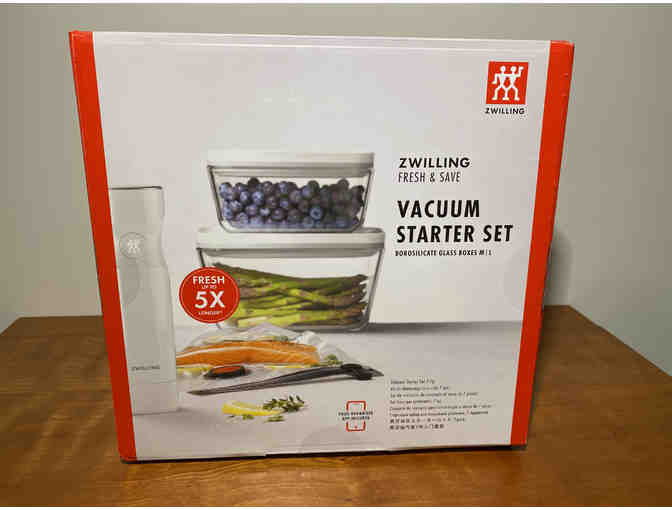 This starter kit includes a rechargeable vacuum pump that is compact, cordless, and quiet, plus a USB-powered charging station for the vacuum pump. The kit also includes 6 containers: one medium and one large container made of borosilicate glass, and two small and two medium sealing bags with easy zip closures. Each container has a port which connects to the vacuum pump that removes the air in the container.