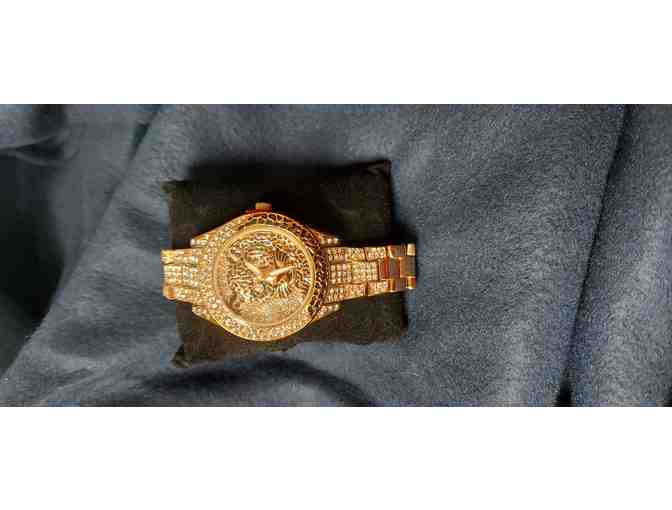Off Park Collection Rose gold watch, crystalon rim and band, leopard face