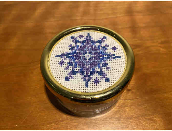 Music Box with Counted Cross-stitch Snowflake Stitched on Top